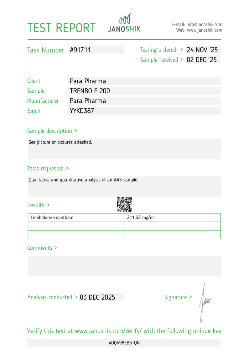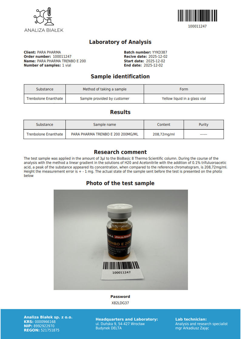 | Substância | Trenbolone Enanthate 200mg/ml |