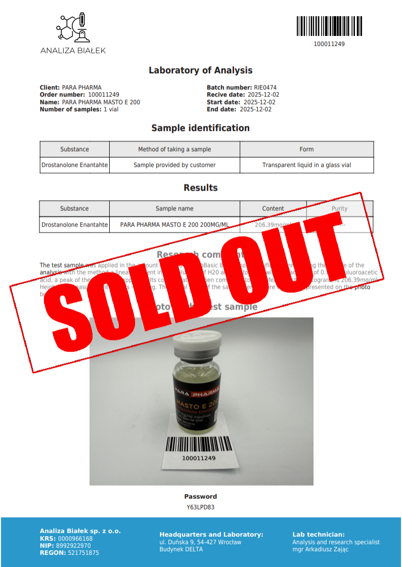 | Substância | Drostanolone Enanthate 200mg/ml |